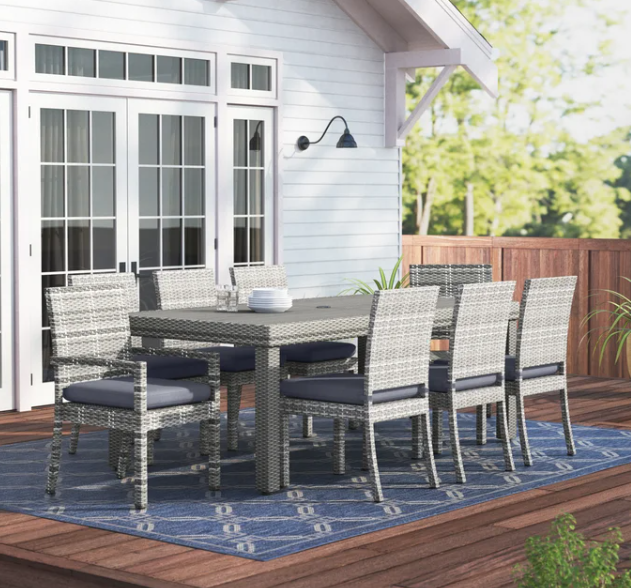 Its foam-filled cushions can be attached using ties. I often remove them to give my dining set a different Look. Also, its covers can be quickly changed or replaced as per your mood swings. Because they are weather resistant, moisture quickly drains out while adding to their durability. Its tabletop and chair frames are built in a 2-tone Gray color that adds a classic look to my patio. At first, I was afraid of its hand-woven finish, which may damage before Christmas. Shop Wayfair Outdoor Furniture.